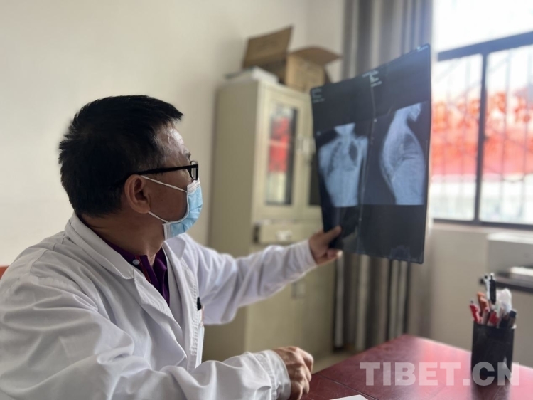 圖為北京海淀區清華大學校醫院的張新輝檢查桑丁之前做的CT片子攝影:德吉卓瑪