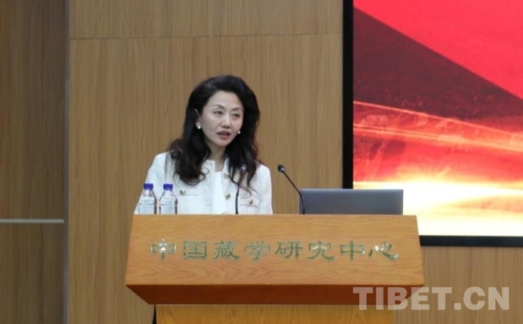圖為邊巴拉姆在紀念西藏民主改革65周年學術研討會上作主題發言 攝影:趙佳