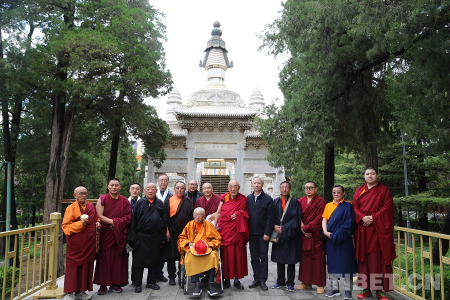 圖為考察團在北京西黃寺清凈化城塔前合影