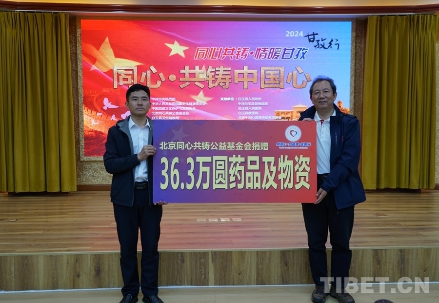 會議開始,與會人員一同觀看了“同心共鑄·情暖甘孜——‘同心·共鑄中國心’2024甘孜行”活動直播。隨后,白玉縣委書記劉堰,專家團團長、清華長庚醫院神經外科主任醫師王貴懷分別致辭。現場還舉行了捐贈儀式和授旗儀式。