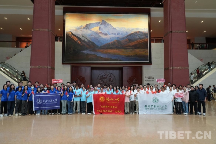 圖為西安交通大學、福州大學和西北農林科技大學的暑期實踐隊參觀西藏博物館