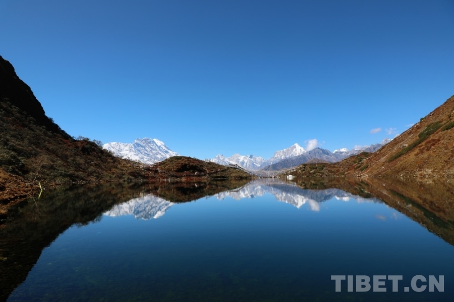 位于吉隆鎮扎村的朗吉錯,是鑲嵌在山間的藍寶石。