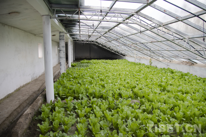 圖為定日縣長所鄉嘎旦村震后修繕的蔬菜溫室大棚內長勢正旺的綠葉菜 攝影:趙振宇