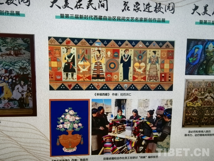 中國西藏網訊 韓書力、次仁平措、普布多吉、羅布斯達......一個個浸潤書香、渲染色彩的名字在“大美在民間——名家進校園暨第三屆新時代西藏自治區民間文藝名家新創作品展”上熠熠發光,展覽所在地西藏大學,師生們在展廳中流連駐足,認真觀展,不時交頭細語,分享感受。