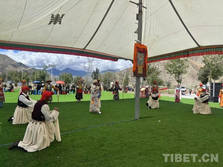 圖為日喀則南木林縣非遺林公園內的湘巴藏戲展演吸引了大批觀眾駐足觀看