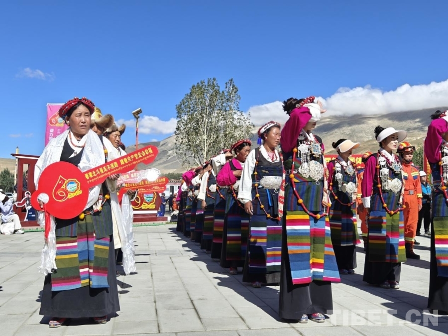 圖為儀式現場,身著定日傳統服飾的村民正在合影留念
