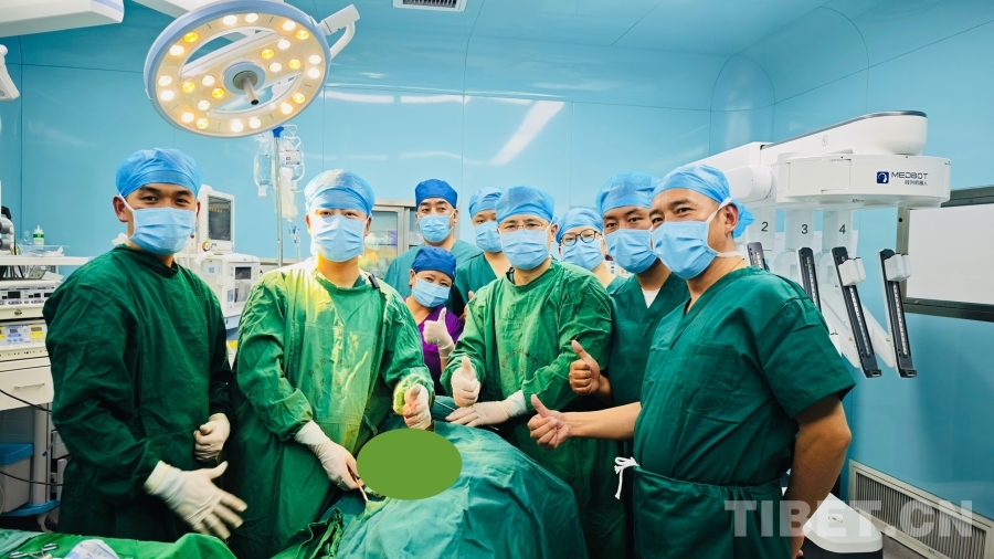圖為那曲市人民醫院手術室內成功完成全球首例海拔4500米以上5G遠程機器人手術