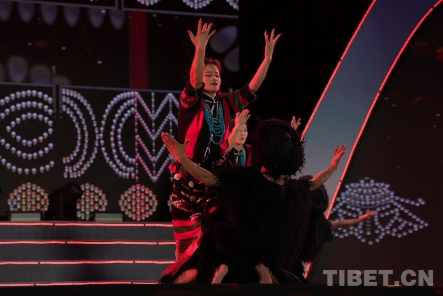 在開幕式文藝晚會上,墨脫縣藝術團作為晚會的“文化使者”,通過五支特色舞蹈,將墨脫的民族文化與精神風貌展現得淋漓盡致:開場舞《相約墨脫》中,舞者身著門巴族、珞巴族服飾,激昂的舞步與悠揚旋律交織,瞬間將觀眾帶入“蓮花秘境”的冬日幻境;《靈動門珞》以肢體語言為筆,生動重現門巴族織錦時的細膩指尖、珞巴族狩獵時的矯健身姿,剛柔并濟的動作勾勒出兩個民族千年生活圖景,贏得現場掌聲雷動。