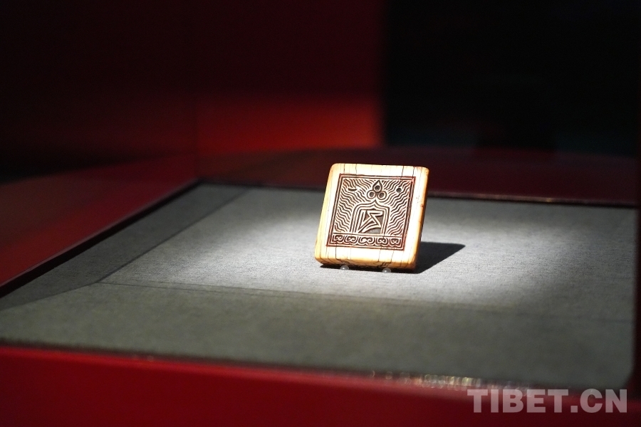 圖為現場展出的“薩”字印,此印為元代西藏薩迦地方官員的印章 攝影:王妍丹