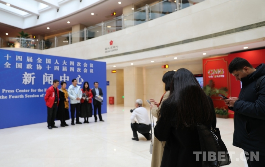 中國西藏網訊 2月28日,北京西長安街北側梅地亞中心的2026年全國兩會新聞中心啟用第二天,新聞發布廳已經布置完畢,不少中外記者前來領取證件、拍攝取景。一切在井然有序中靜待全國兩會開幕。