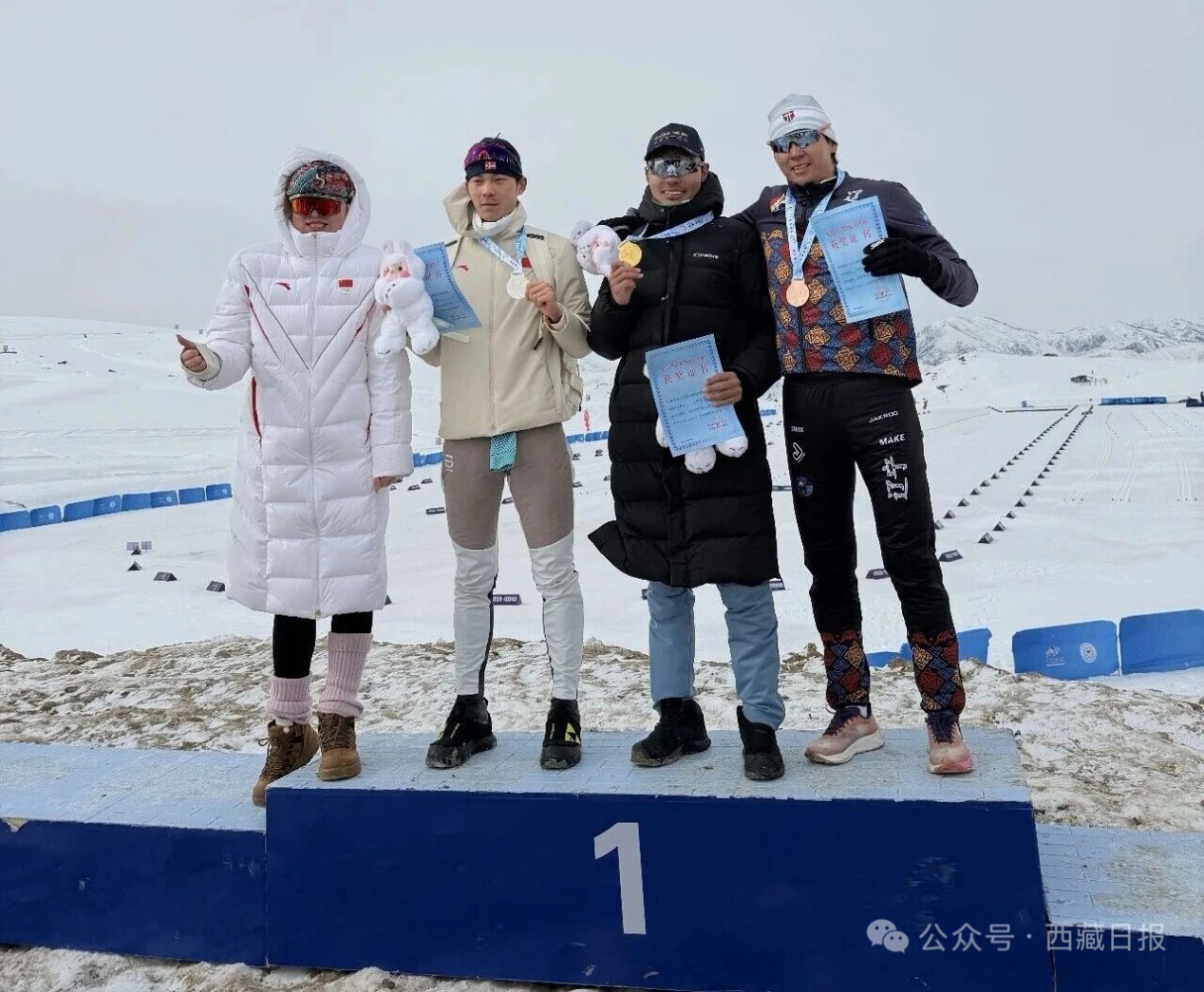 次仁占堆(右二)站在領(lǐng)獎臺上
