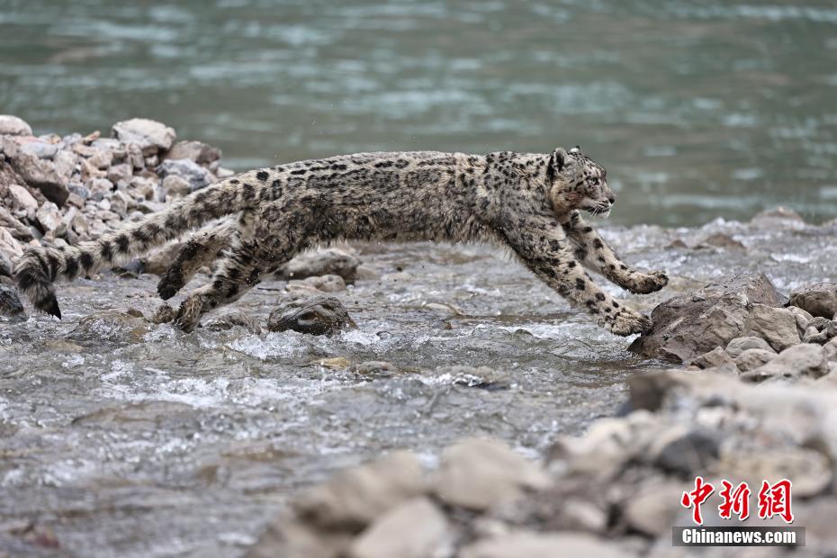 瀾滄江源區(qū)生態(tài)管護(hù)、體驗(yàn)者拍雪豹渡河珍貴畫面