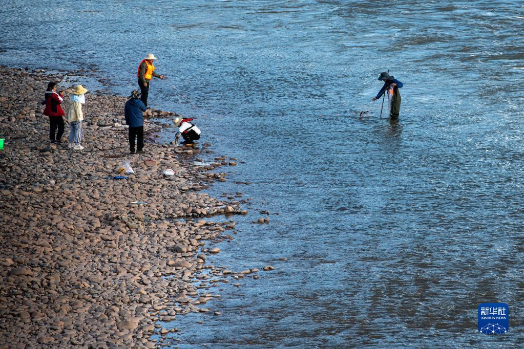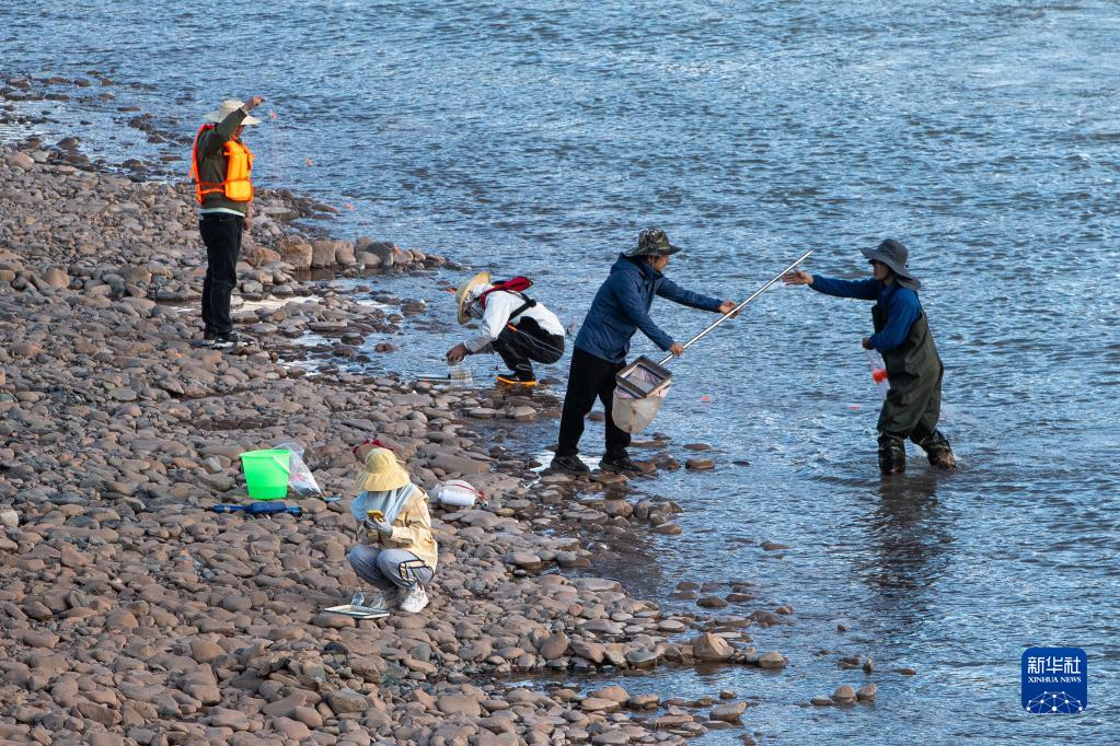 7月24日,長江科學院科考隊員劉晗(右)在瀾滄江源區的扎曲采集魚類樣本。新華社記者 肖藝九 攝