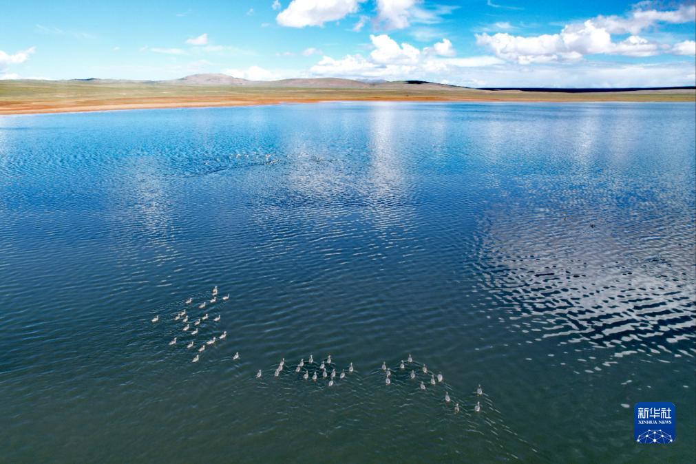長江源區的水鳥群(7月26日攝,無人機照片)。 新華社記者 劉詩平 攝