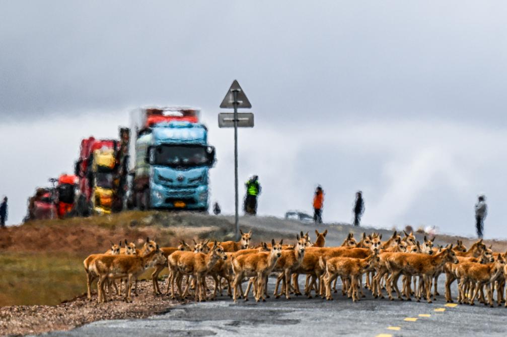 70年過去,青藏公路與可可西里這片土地早已“融為一體”。青藏公路3001、3002公里處,是可可西里藏羚羊遷徙的重要通道。每到藏羚羊遷徙產(chǎn)仔季,在可可西里工作人員的指揮下,來往車輛會(huì)在這里自覺排成長龍,在遠(yuǎn)處默默等待,為“高原精靈”讓路。