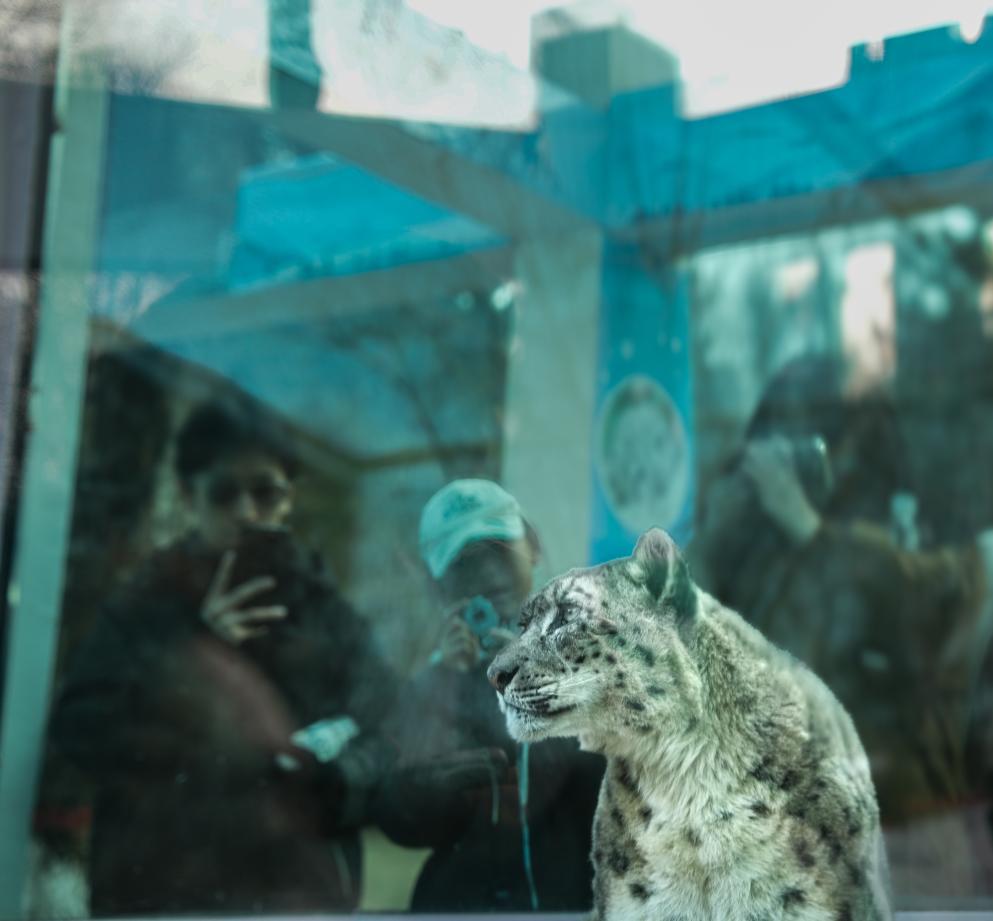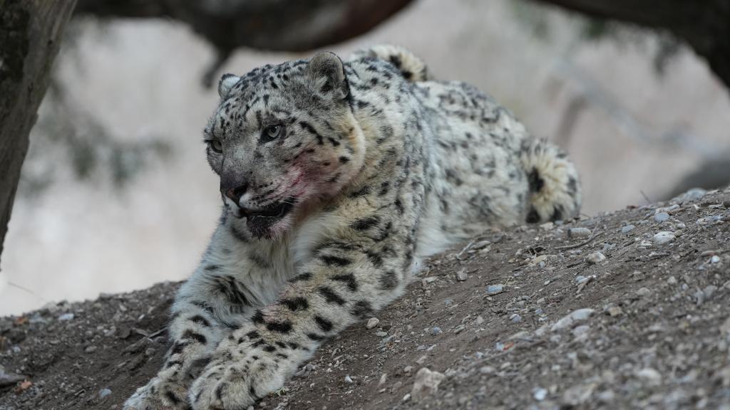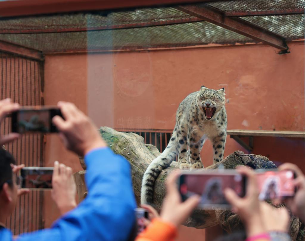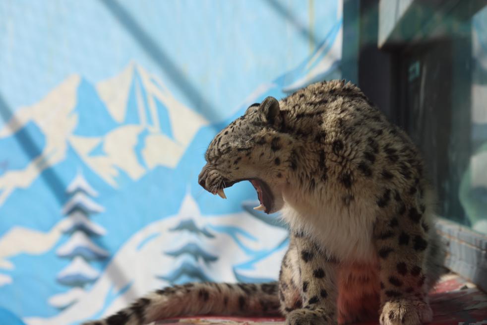 2025年3月被救護的雪豹“凌小蟄”在雪豹館內嘶吼。