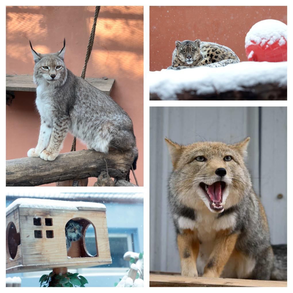 這是被網友戲稱為動物園“F4”(猞猁、雪豹、兔猻、藏狐)照片。(拼版照片)