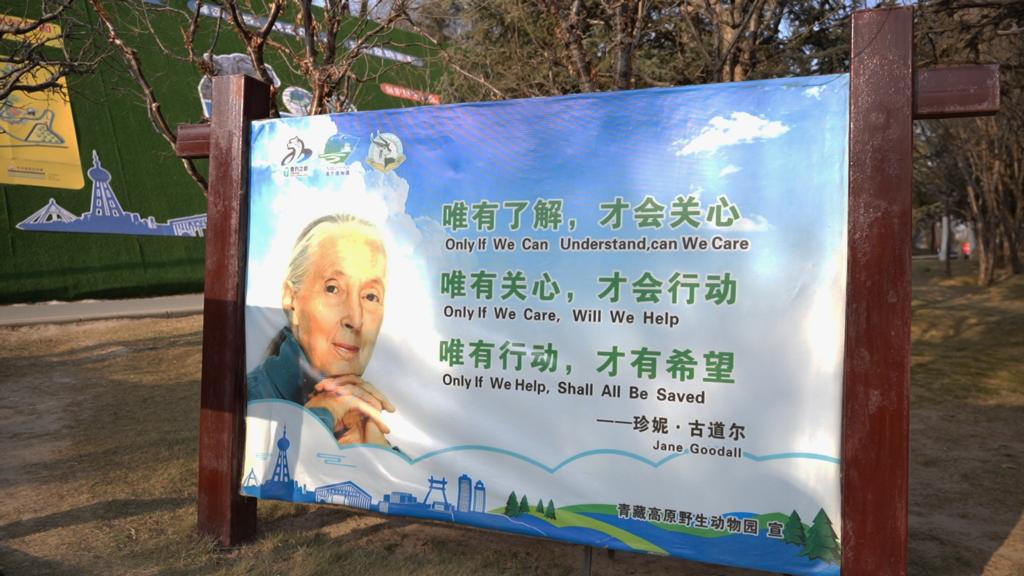 這是西寧野生動物園的第一張科普牌,上面印著國際動物學家珍妮·古道爾的名言。