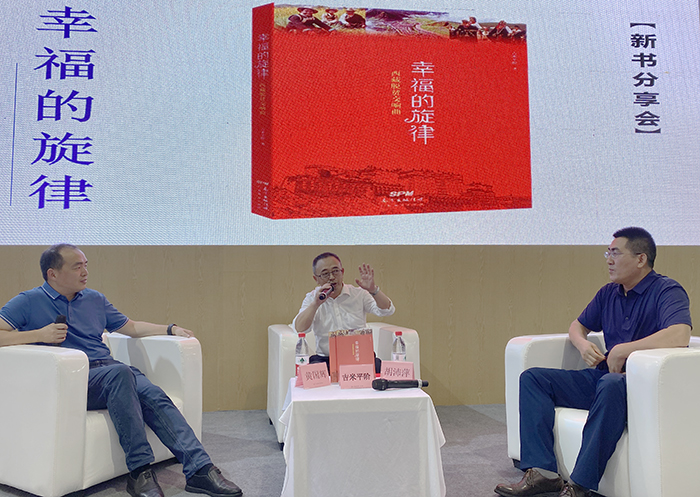 書博會現場,該書作者、西藏自治區文聯副主席吉米平階,中國作家協會創作聯絡部副主任黃國輝,西藏民族大學文學院教授胡沛萍等與讀者面對面交流,分享西藏脫貧攻堅戰中的感人故事。