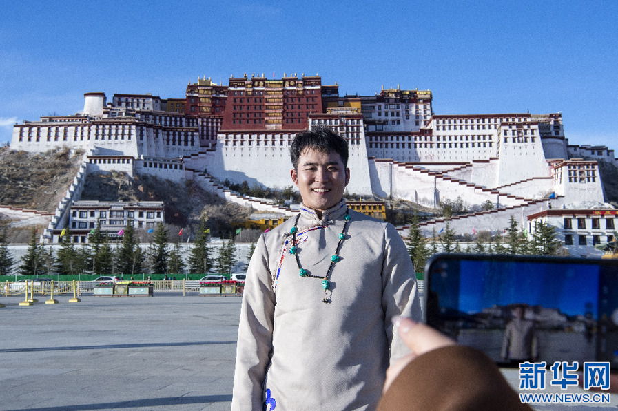 來自云南的游客在布達拉宮廣場拍照留念(1月30日攝)。新華網 旦增努布 攝