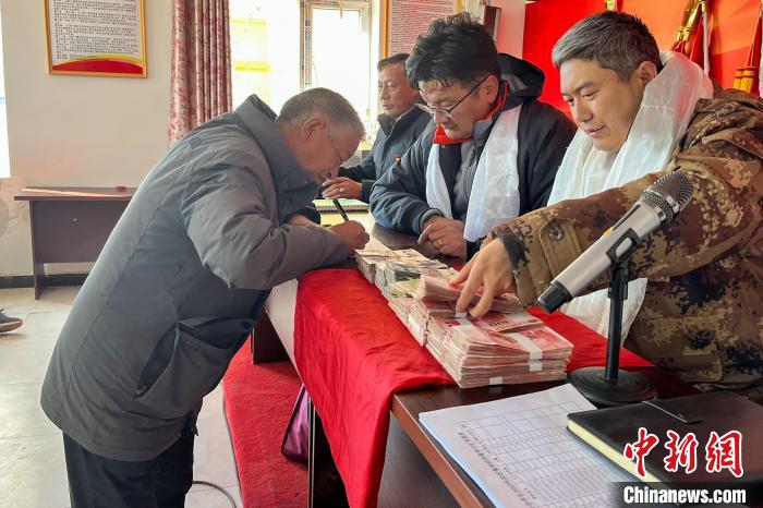 圖為2月19日,西藏那曲安多縣帕那鎮申格卡崗村牧民分紅。中國鐵路青藏集團有限公司 供圖