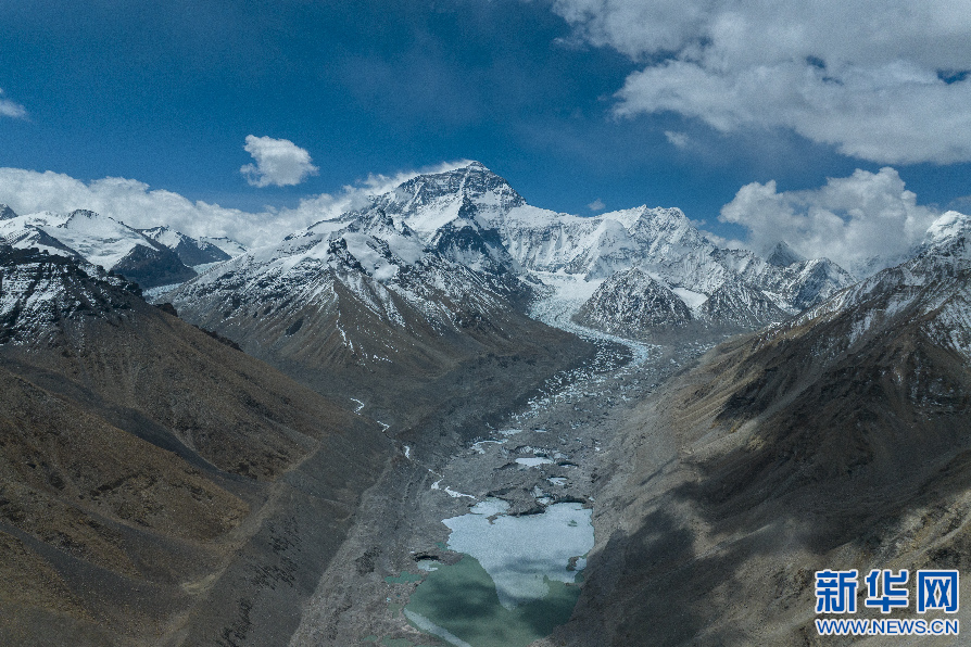 珠穆朗瑪峰與冰湖。新華網 旦增努布 攝