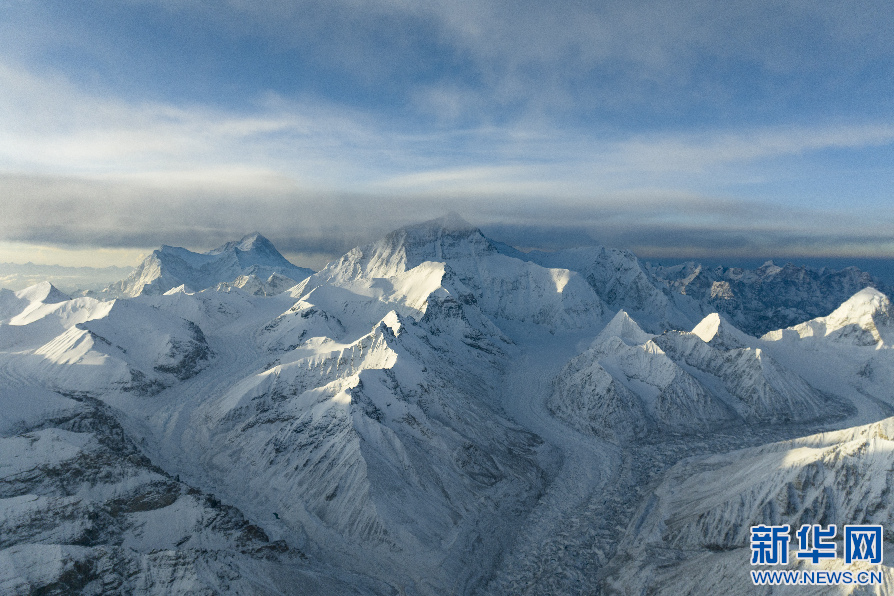 在海拔8000米左右拍攝的珠穆朗瑪峰(無人機照片)。 新華網 旦增努布 攝
