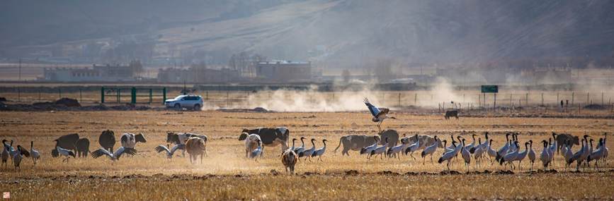 林周縣地處雅江中游河谷黑頸鶴國(guó)家級(jí)自然保護(hù)區(qū),優(yōu)良的生態(tài)環(huán)境、適宜的氣候,讓這里成為黑頸鶴越冬的天選之地。