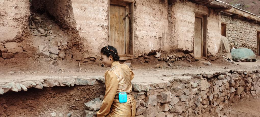 扎西拉姆走向鹽倉(cāng)。新華社記者魏冠宇 攝