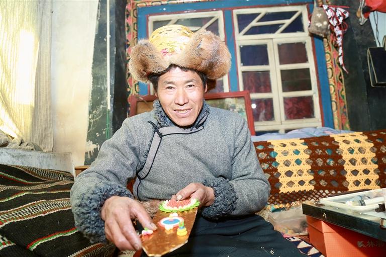 “德卡”,作為傳統藏式點心“卡塞”的一種,在藏歷新年的年貨清單里占據著不可或缺的位置。每到藏歷新年前夕,旦索朗一家便進入了一年中最忙碌的時段——經營起制作和售賣卡塞的生意。旦索朗回憶起小時候的新年,感慨萬分:“小時候過年,家家戶戶都自己炸卡塞,那時候,整個村子都被卡塞的濃香包圍著。現在生活條件好了,很多人覺得在外購買德卡更方便省事,這也給我們帶來了商機。我們做炸德卡的生意已經6年了,一直都很受歡迎,還帶動了6名村民一起參與,增加了大家的收入。”