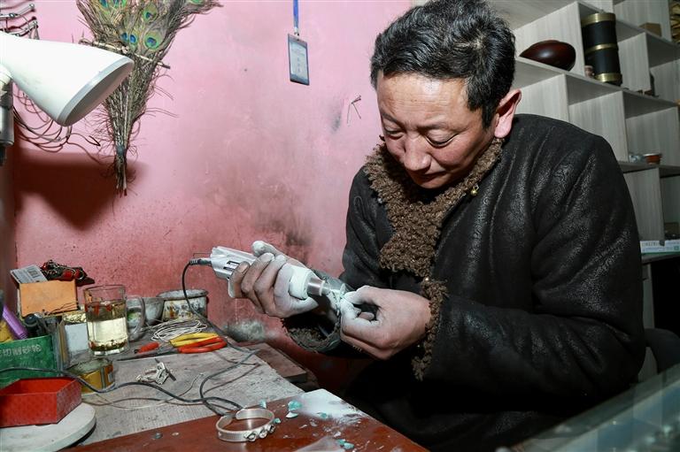 此時,一位顧客走進店內:“你好,我現在定做阿吉祖玉首飾大概什么時候能完成呀?”顧客滿懷期待地問道。“現在訂單比較多,不過您放心,在藏歷新年前肯定能完成。”次央多吉熱情地回應道。
