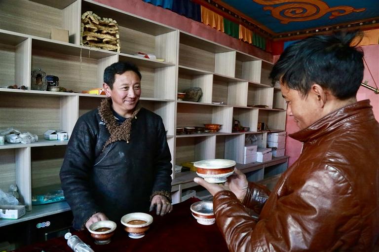 43歲的次央多吉是墨竹工卡縣級非物質文化遺產阿吉祖玉傳承人。這份傳承的使命,自他的祖輩起便已延續。在他的記憶中,長輩們熟練掌握這項非遺技藝的身影,深深烙印在他的心中。“阿吉祖玉是祖先傳下來的東西,不能丟。”抱著這樣堅定的想法,次央多吉在年少時便立下決心,要將這門技藝傳承下去,并不斷發揚光大。