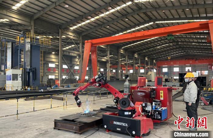 圖為林芝金屬結構廠首臺全自動焊接機器人。林芝金屬結構廠 供圖