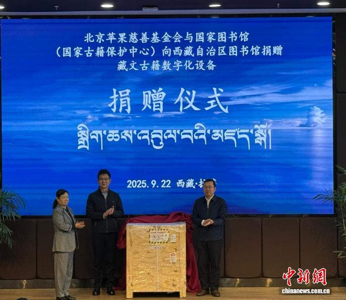 北京蘋果慈善基金會與國家圖書館(國家古籍保護中心)向西藏自治區圖書館捐贈藏文古籍數字化設備捐贈儀式22日在西藏拉薩舉行,此次活動是落實雙方2019年簽署的合作框架協議的具體舉措,旨在為西藏古籍的搶救性保護與數字化傳承工作提供切實的技術與設備支持。