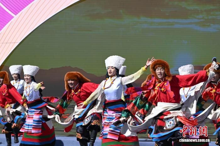 圖為阿里地區改則縣藝術團表演舞蹈《歡舞幸福·改則情》。中新社記者 貢嘎來松 攝