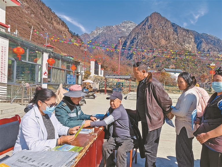 圖為醫護人員為莊堆村廣大群眾進行義診體檢與健康宣傳。記者 武沛濤 攝