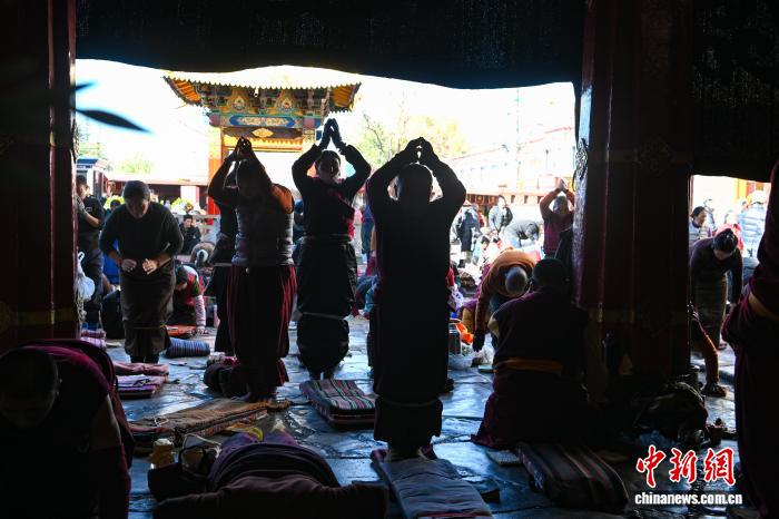 11月28日,西藏拉薩,信眾在大昭寺轉經。西藏進入冬季農閑期,眾多藏傳佛教信眾從各地匯聚到拉薩,圍繞林廓轉經路、大昭寺等地轉經、禮佛、朝拜。中新社記者 貢嘎來松 攝