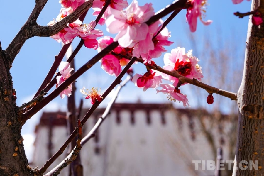 這座海拔3650米的“日光之城”,在漫長的冬日里,一直以純粹到幾乎透明的藍面世。而當春分的腳步悄然臨近,一場由喜馬拉雅山脈南麓山谷悄然潛入的暖濕氣流,終于鼓足了勇氣,輕輕叩響了紅山腳下的土地。于是,布達拉宮醒了,是被花叫醒的。