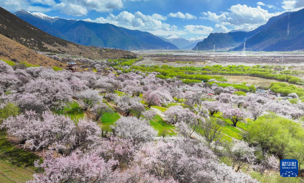 這是在林芝市巴宜區嘎拉村拍攝的桃花(4月1日攝,無人機照片)。新華社記者 丁增尼達 攝