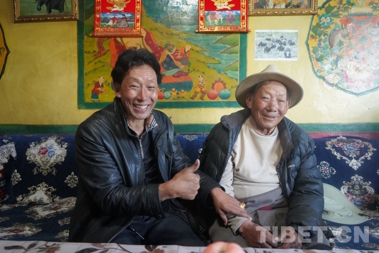 羅加書記和父親長得很像,尤其是那雙有神的眼睛里,都帶著一絲堅韌。坐在一旁的82歲老人貢桑白旦沉默少言,但當他講起自己當年的一段段故事,你會覺得這眼神中盡是歲月的沉淀。