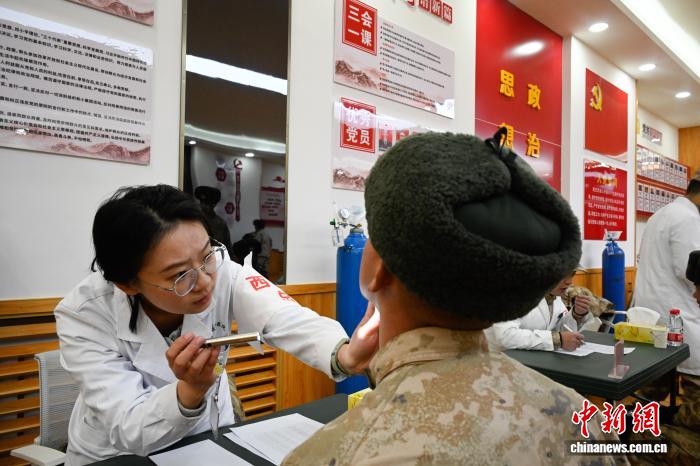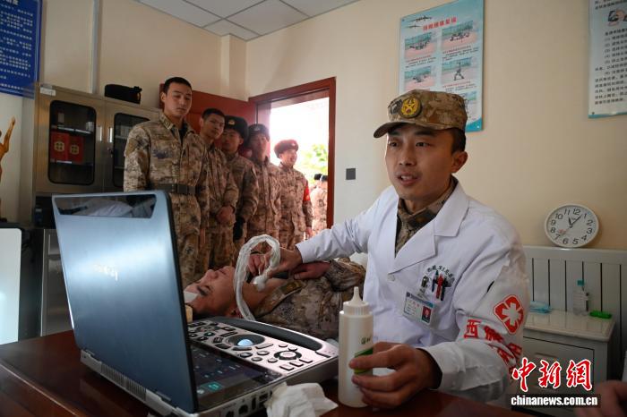 圖為醫生為部隊官兵檢查身體。西藏軍區總醫院供圖